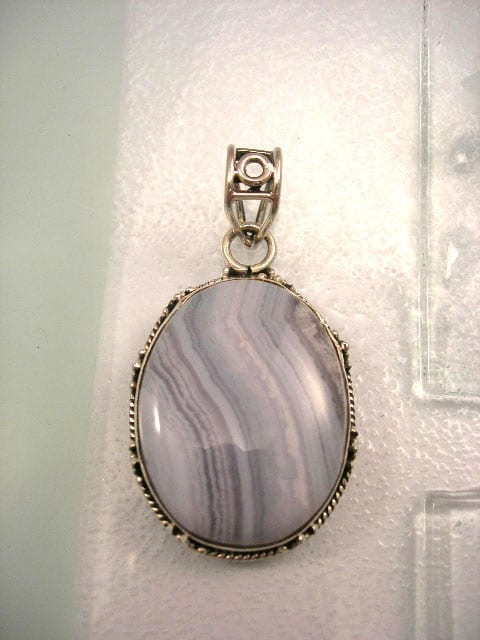 Berlock med karbinlås - Kant/Bandagat Sterling silverberlock med Band agat, 3,8 cm lång inklusive karbinlåset och 2,6 cm bred.