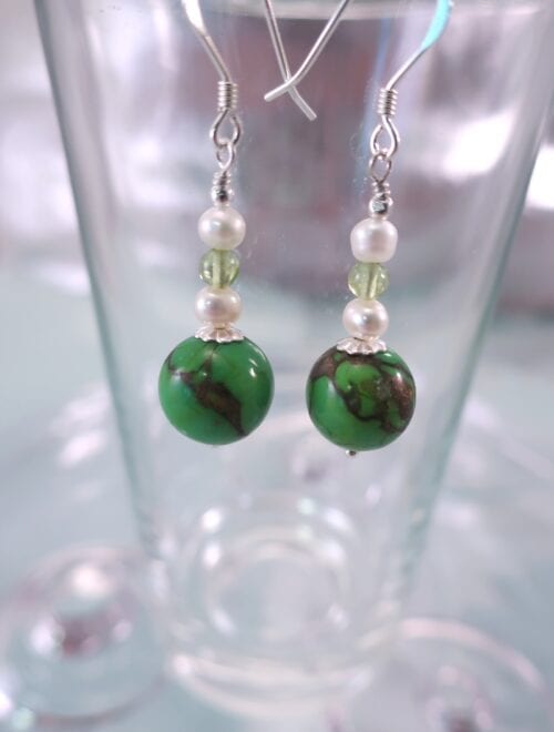 Turkos, Peridot, Sötvattenspärlor örhängen – Turkoser