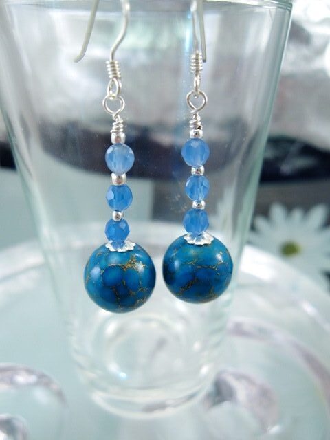 Topas örhängen – Ljusblå/Briolett/Fasett/Studs