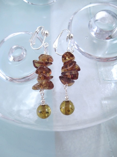 Clips örhängen med Bärnsten Harts – Ranka/Grön