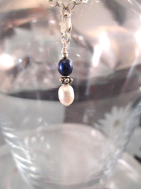 Berlock med karbinlås – Pärla/Sötvattenspärlor/Blå/Vit
