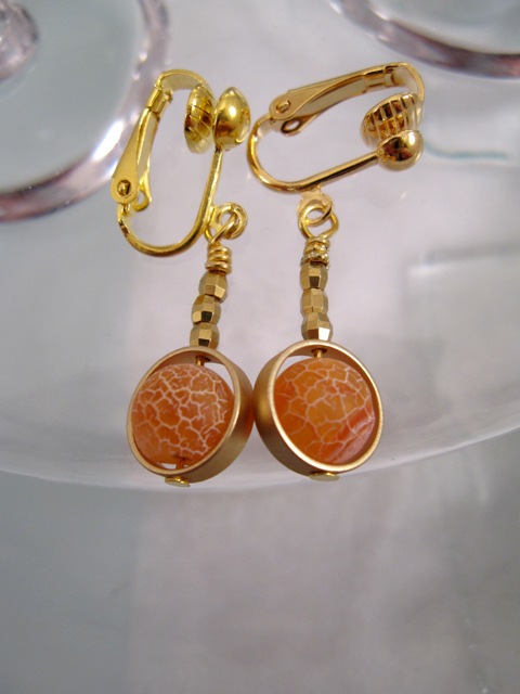 Clips örhängen med Ådrade Agater – Orange/Inringade