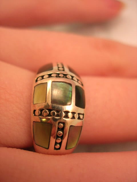 Sterling silverring med Abalone, mönstret med Abalone mäter 2 cm x 1,3 cm storlek 18.50.
