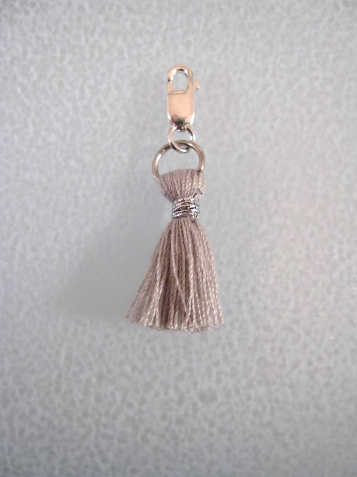 Berlock med karbinlås – Tofs/Grå