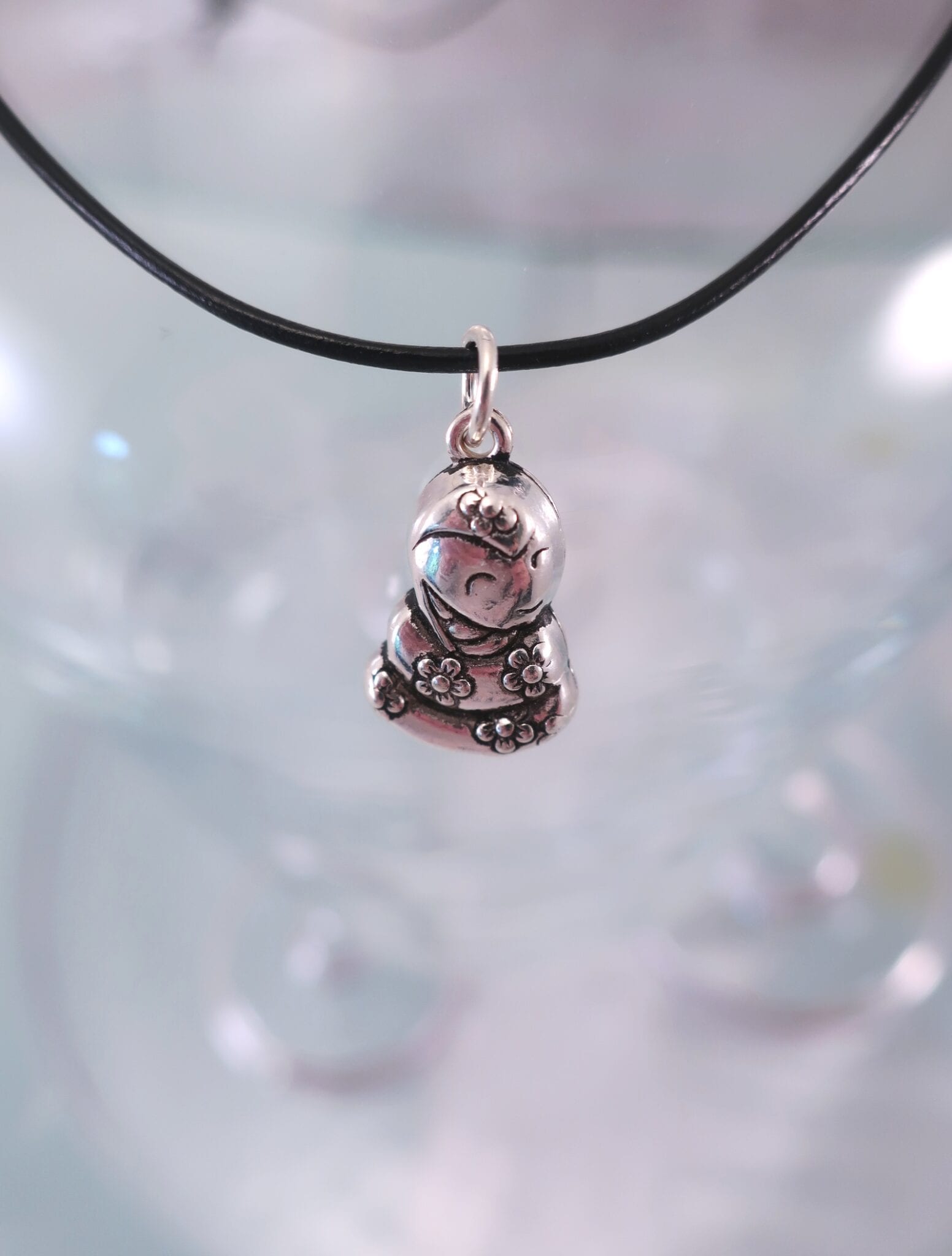 Silverberlock med orm,  djur ur det kinesiska horoskopet, 2 cm långt inklusive hängöglan och 1,6 cm brett på 1 mm läderrem som är 60 cm lång. Du kan själv knyta eller förkorta remmen.