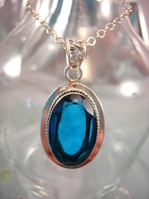 Sterling silverhänge med fasettslipad blå kvarts, 5,3 cm långt och 2,8 cm brett. Väger 17 gram.