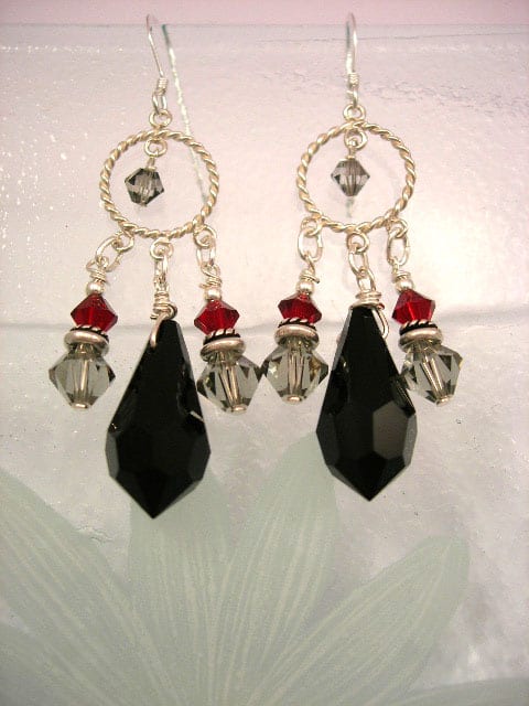 Handgjorda sterling silverörhängen med Swarovski och Tjeckiska Kristaller, 4 cm långa exklusive kroken och 1,2 cm breda som bredast. Väger 6 gram tillsammans.