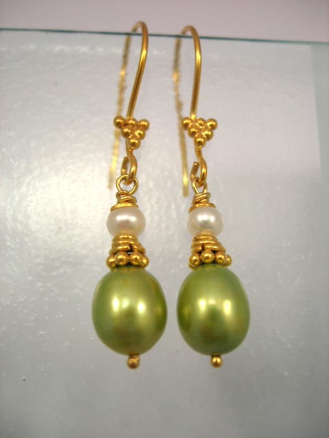 Vilken tur jag hade som hittade de här söta örhängena som passar så perfekt till mitt halsband med peridot och pärlor. Det är så vackert ihop.