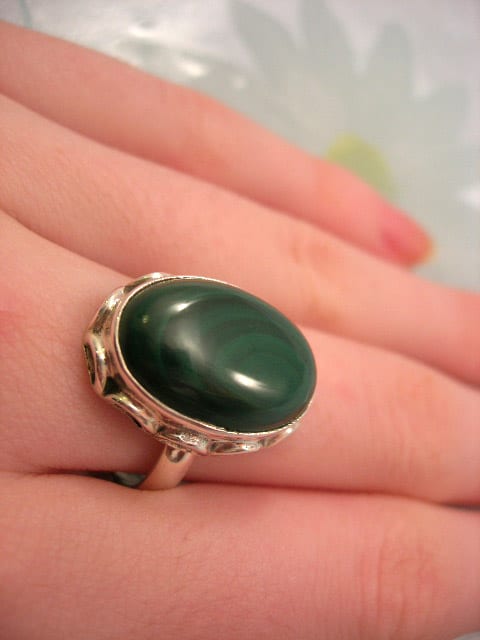 Handgjord sterling silverring med Malakit, skölden är ca 2,3 x 1,5 cm. Storlek 18.